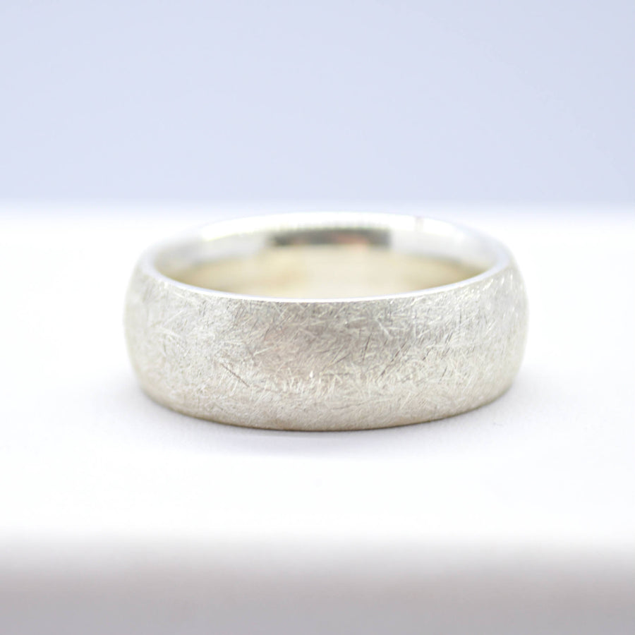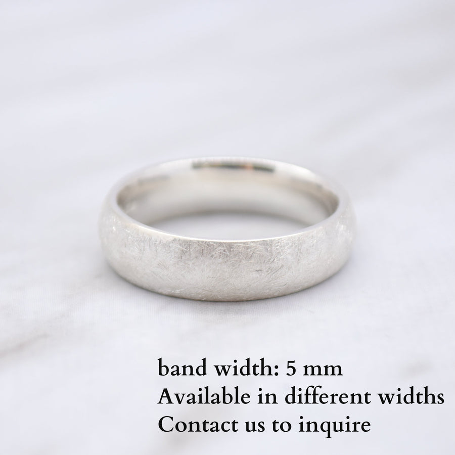Make your promise with this gorgeous comfort fit ring. This classic style, custom made ring features a diamond brush finish and made of high quality tarnish-resistant sterling silver.