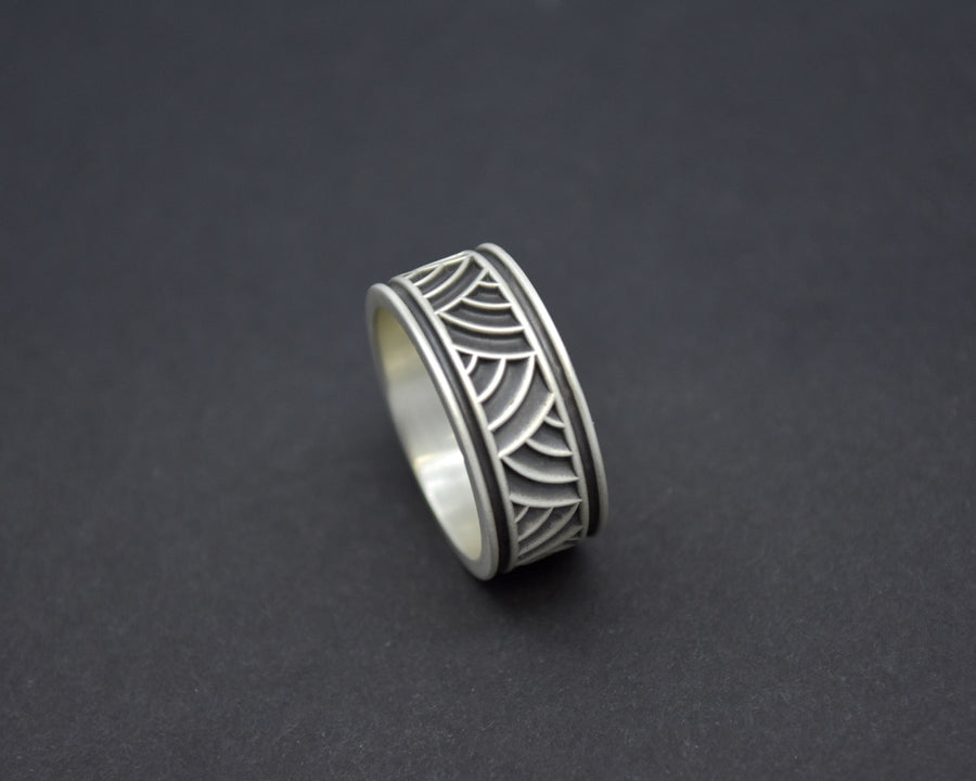 ** Our Sydney ring has a sizing bar at the end. The print is not all the way around as we know that our fingers change over time. This will allow for future sizing.**